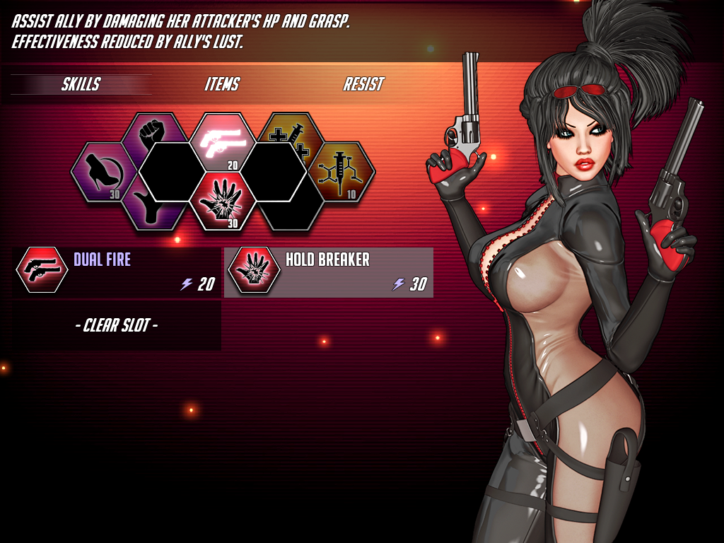 - Added armor damage icons to the menu and Status menu. Sections of these icons transition from white to orange as a character takes damage. Once a section of the armor is orange, it can be broken by certain enemy skills if the character's lust is high enough. Broken armor sections are shown in red.